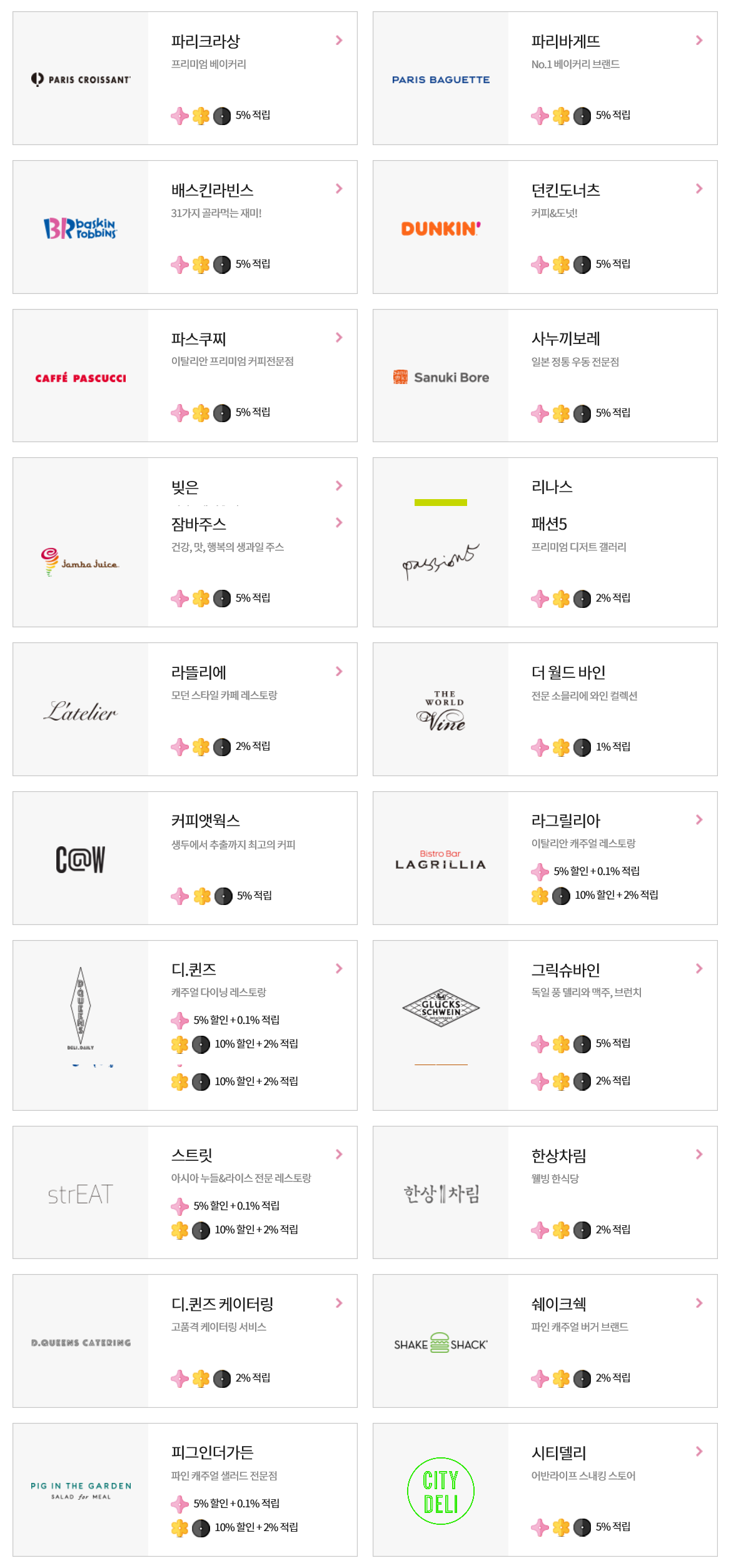 본격적으로 해피포인트 사용처 에 대해 알아볼까요? 해피포인트는 베이커리, 카페 뿐만 아니라 다양한 외식 브랜드에서도 적립이 가능합니다.